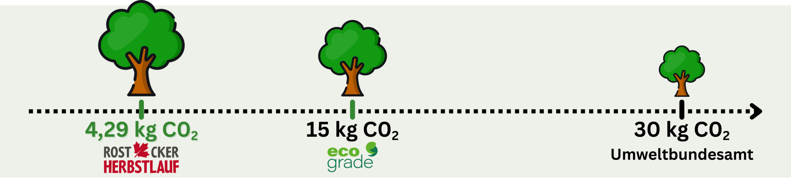 Einen wichtigen Schritt haben wir im Jahr 2025 mit dem Ecograde-Zertifikat erreicht. Dieses Zertifikat berücksichtigt den CO2-Fußabdruck unserer Veranstaltung. Der Rostocker Herbstlauf erreicht nach Erfassung aller Daten und Auswertung dieser mit 4,29 kg CO₂ pro Teilnehmer die Kriterien der Ecograde Zertifizierung von max. 15 kg CO2 pro Teilnehmer. Damit strebt Ecograde einen nochmals strengeren Wert als das Umweltbundesamt (UBA) mit 30 kg CO2 pro Peron und Tag an.